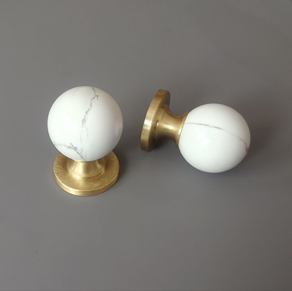Арт. 006 ручка мебельная кноб 28 мм, белый мрамор / матовая латунь