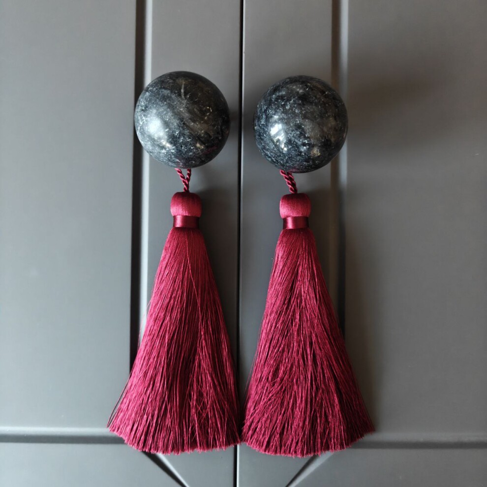 Справятся с дверцей шкафа любой высоты, могут быть размещены в центре створки и конечно же дополнительно декорированы нашими шелковыми кистями