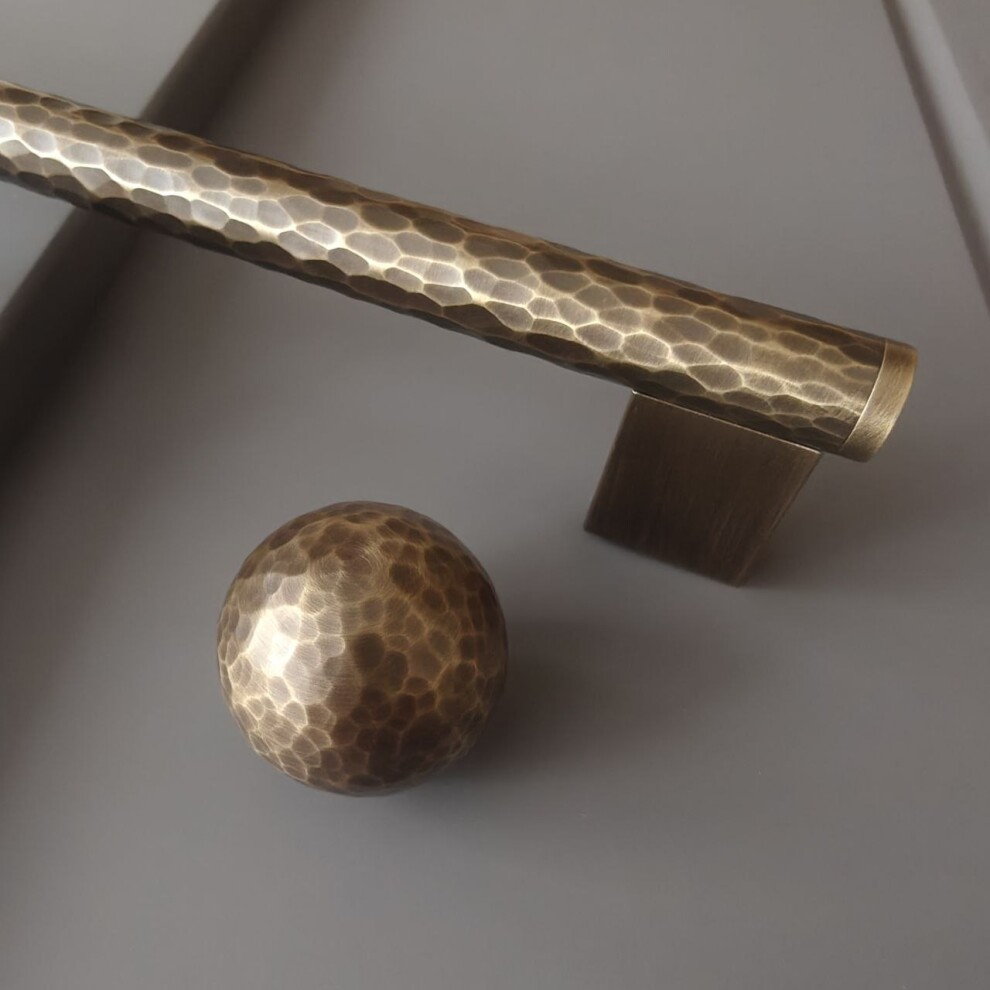 Арт. 057 ручка мебельная кноб фактурный шар 30 мм, бронза, латунь патина