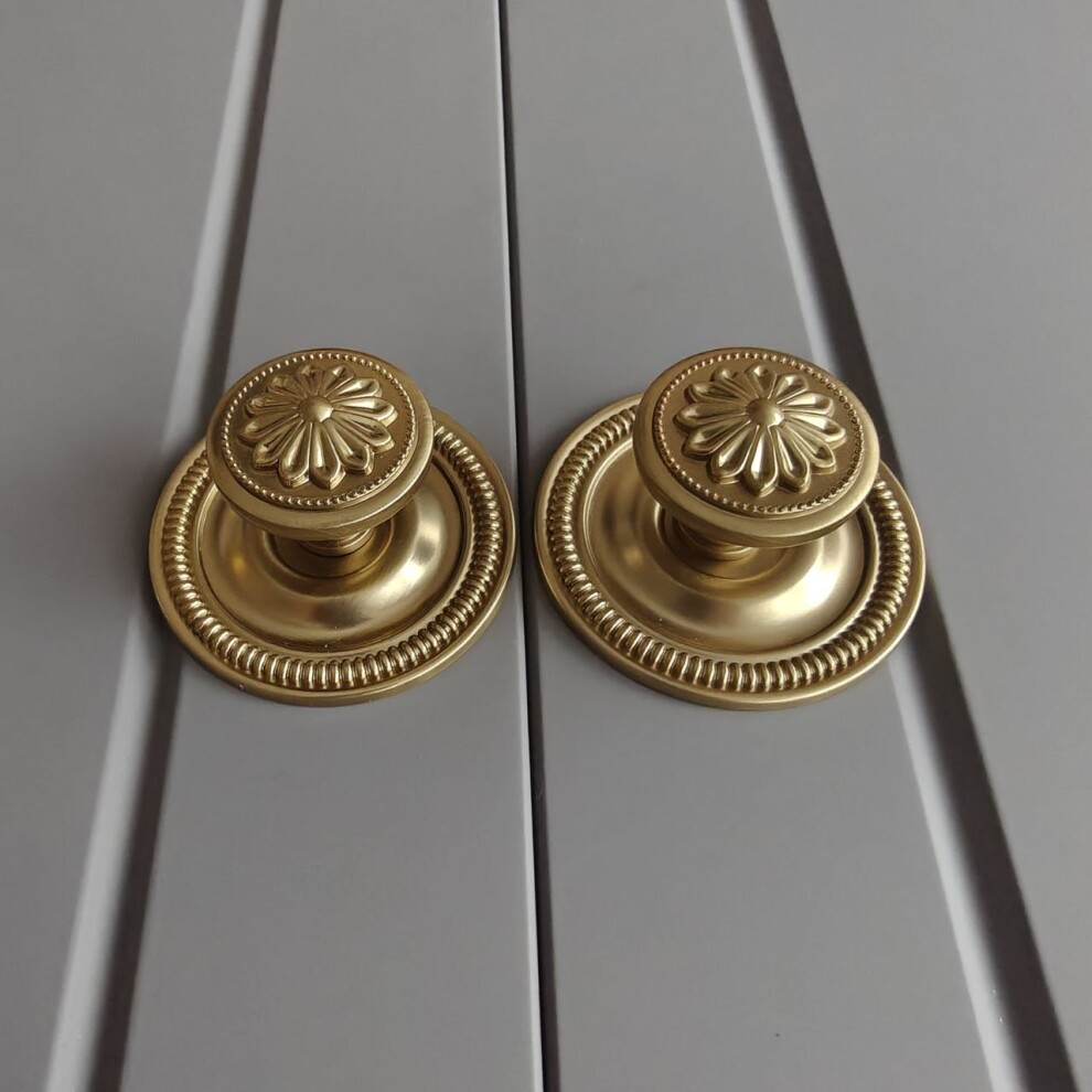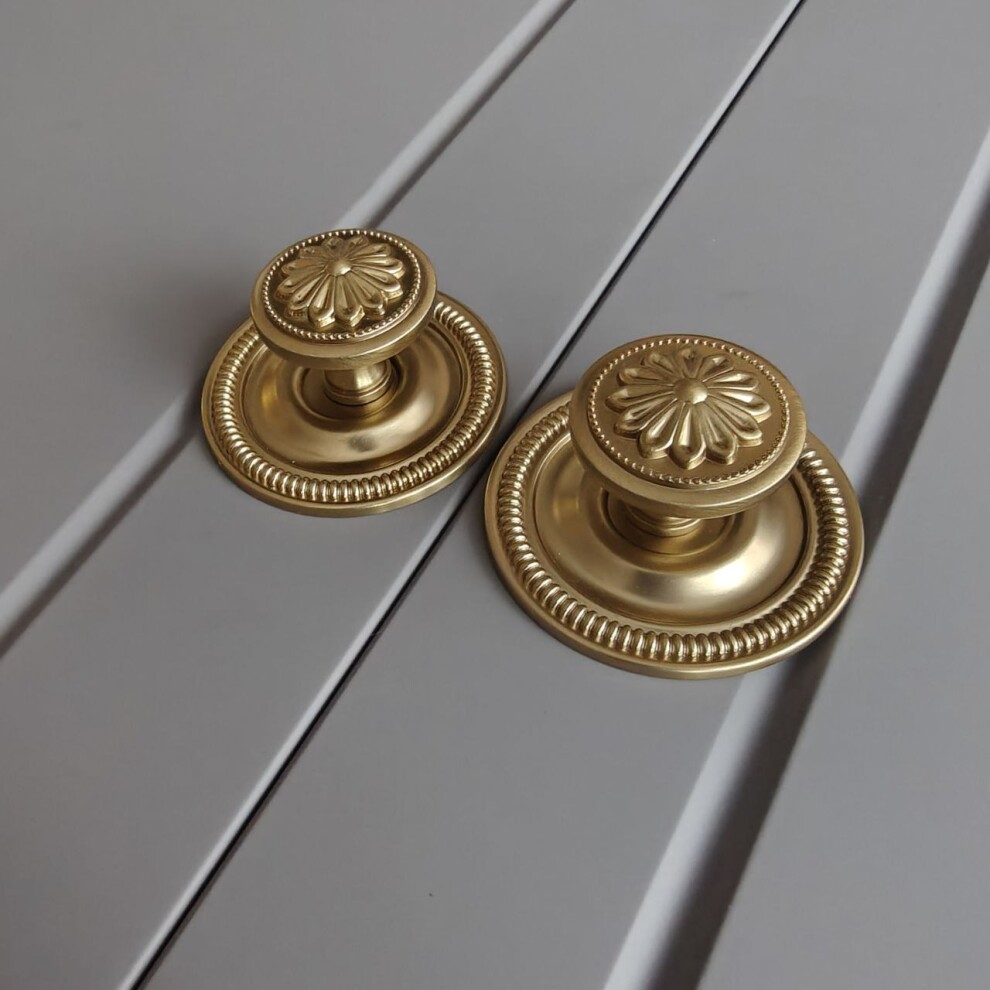 Благодаря резной розетке, ручка смотрится величественно и монументально.