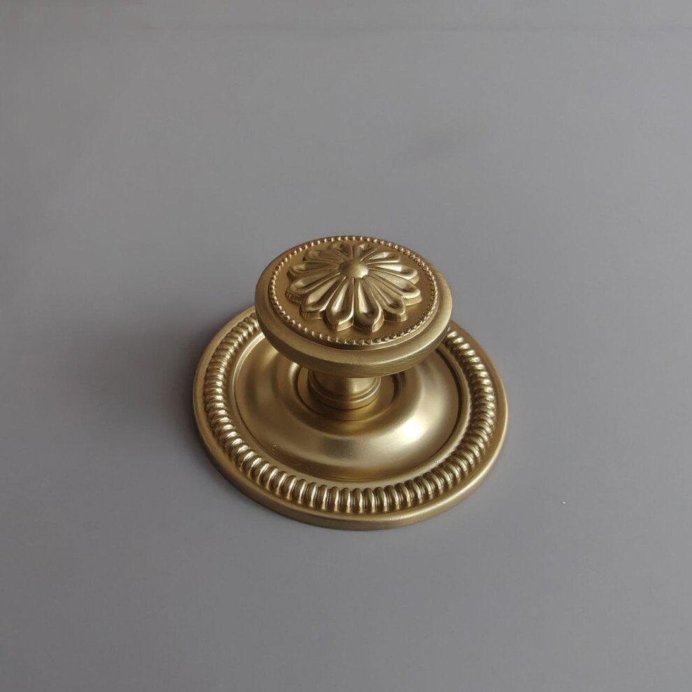 art. 095 ручка мебельная кноб 35 мм на розетке 64 мм, матовая латунь