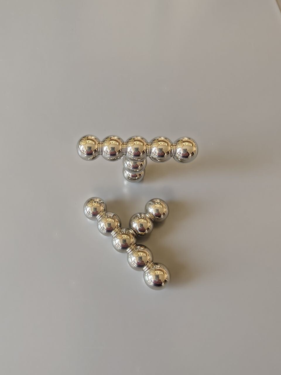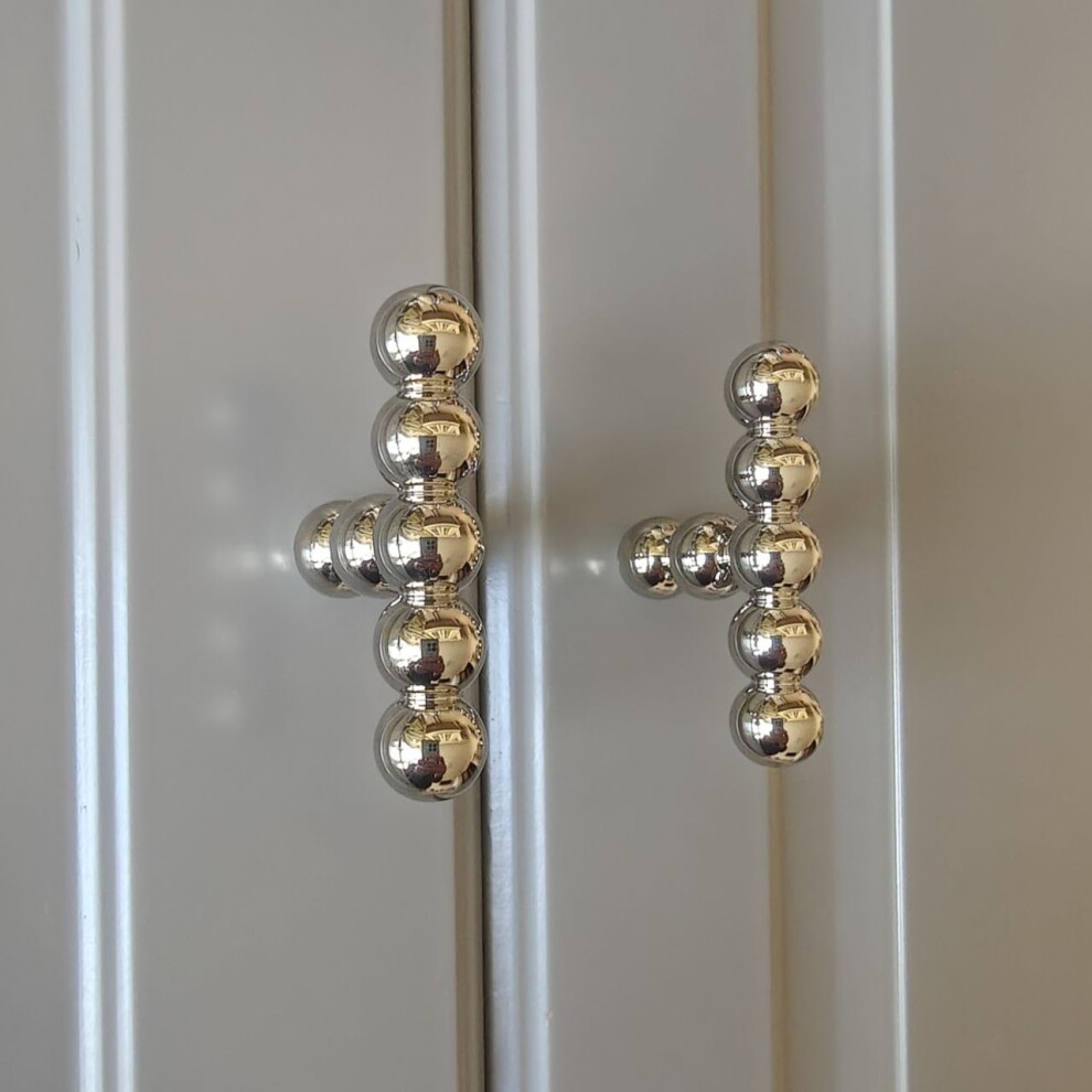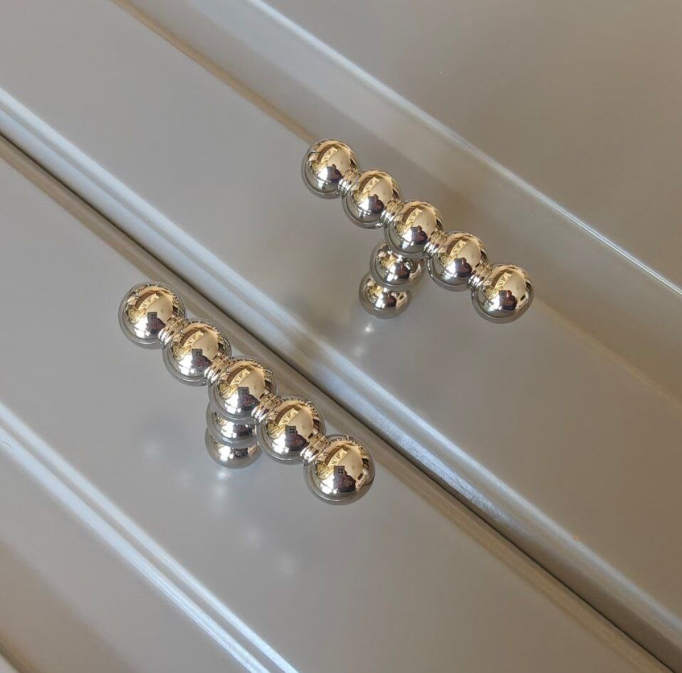 Ручка из литой латуни напоминает то ли цепочку, то ли нанизанные на травинку ягоды-бусины, при этом выглядит мягко и нежно.