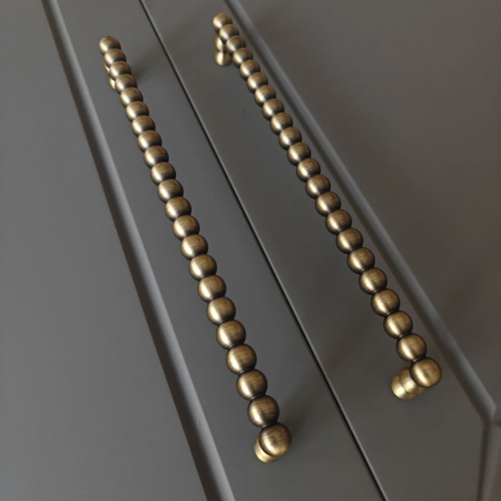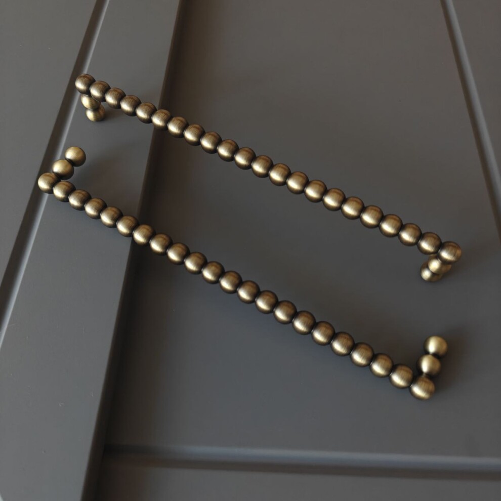 Скоба и литой латуни напоминает то ли цепочку, то ли нанизанные на травинку ягоды-бусины, при этом выглядит мягко и нежно.