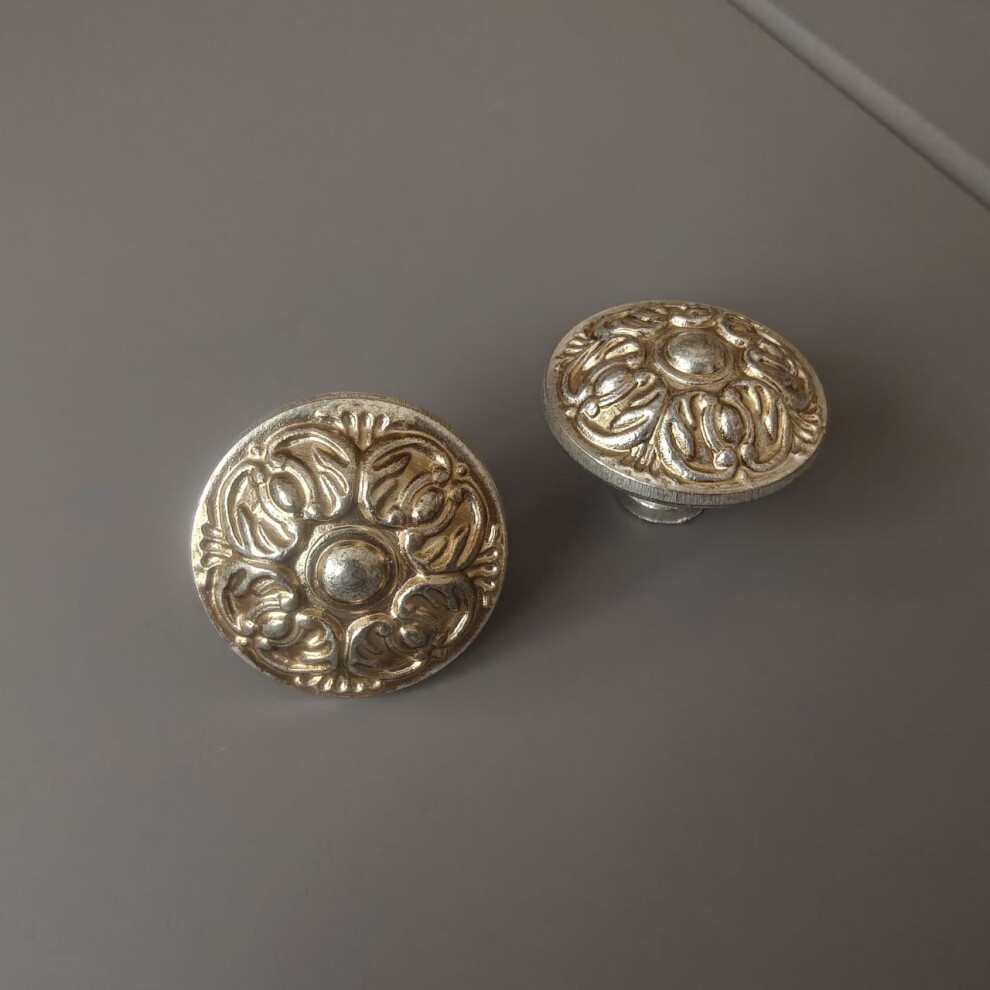 Мебельные ручки кнобы в состаренном серебре с позолотой