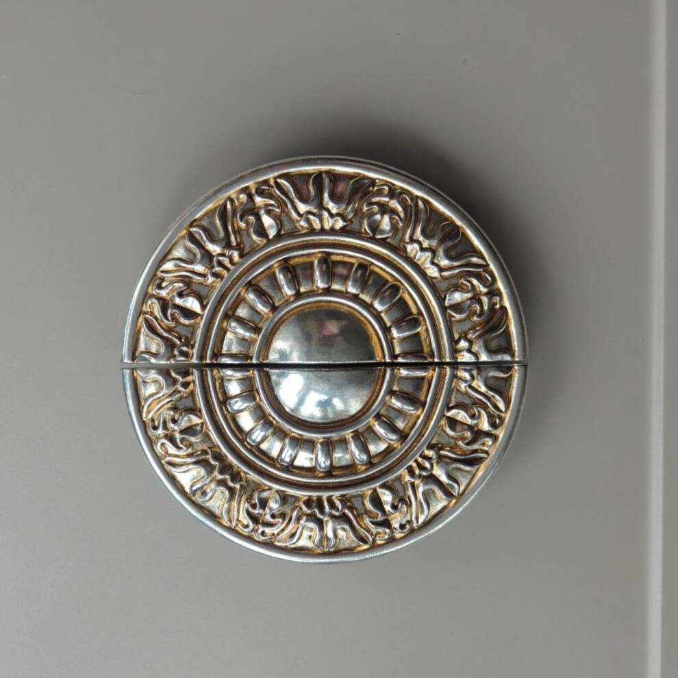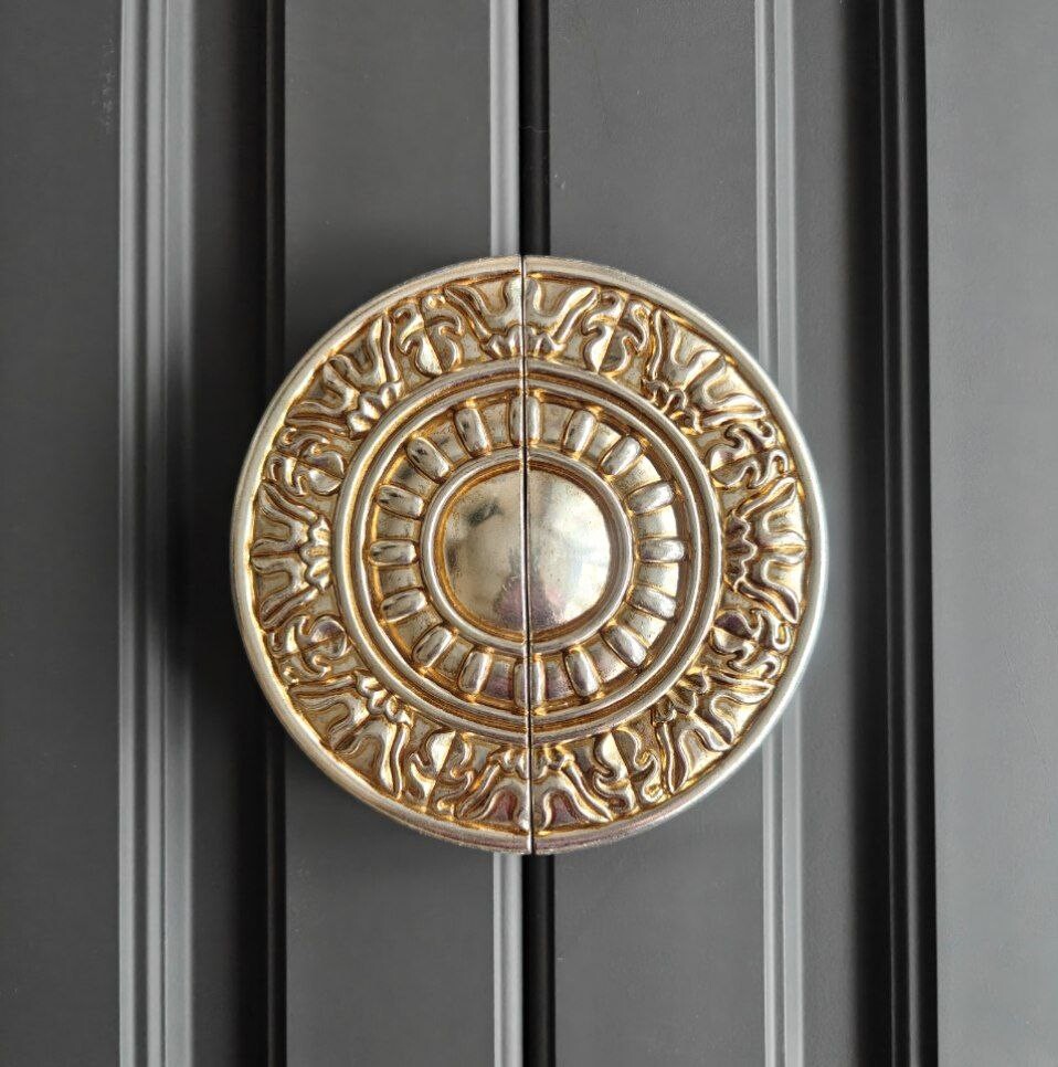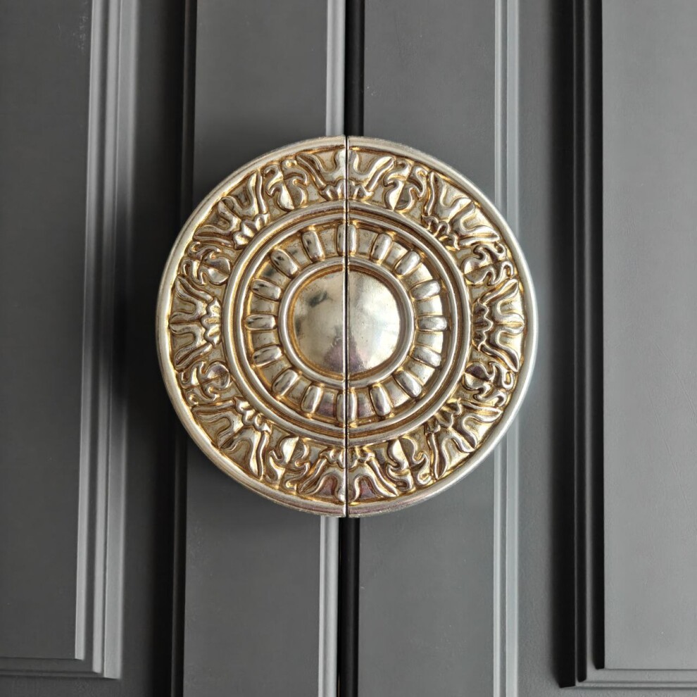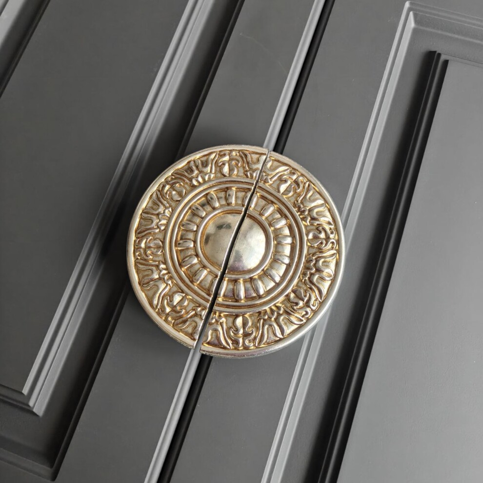 Удивительно изысканное сочетание серо-белесого серебра и античной позолоты, настолько тонкое, чтобы не свалиться в вульгарную банальность.