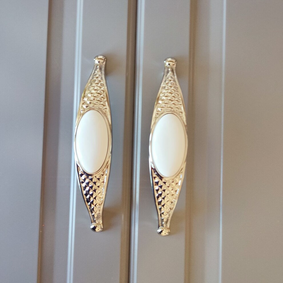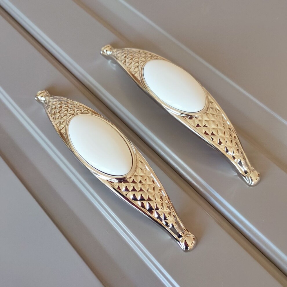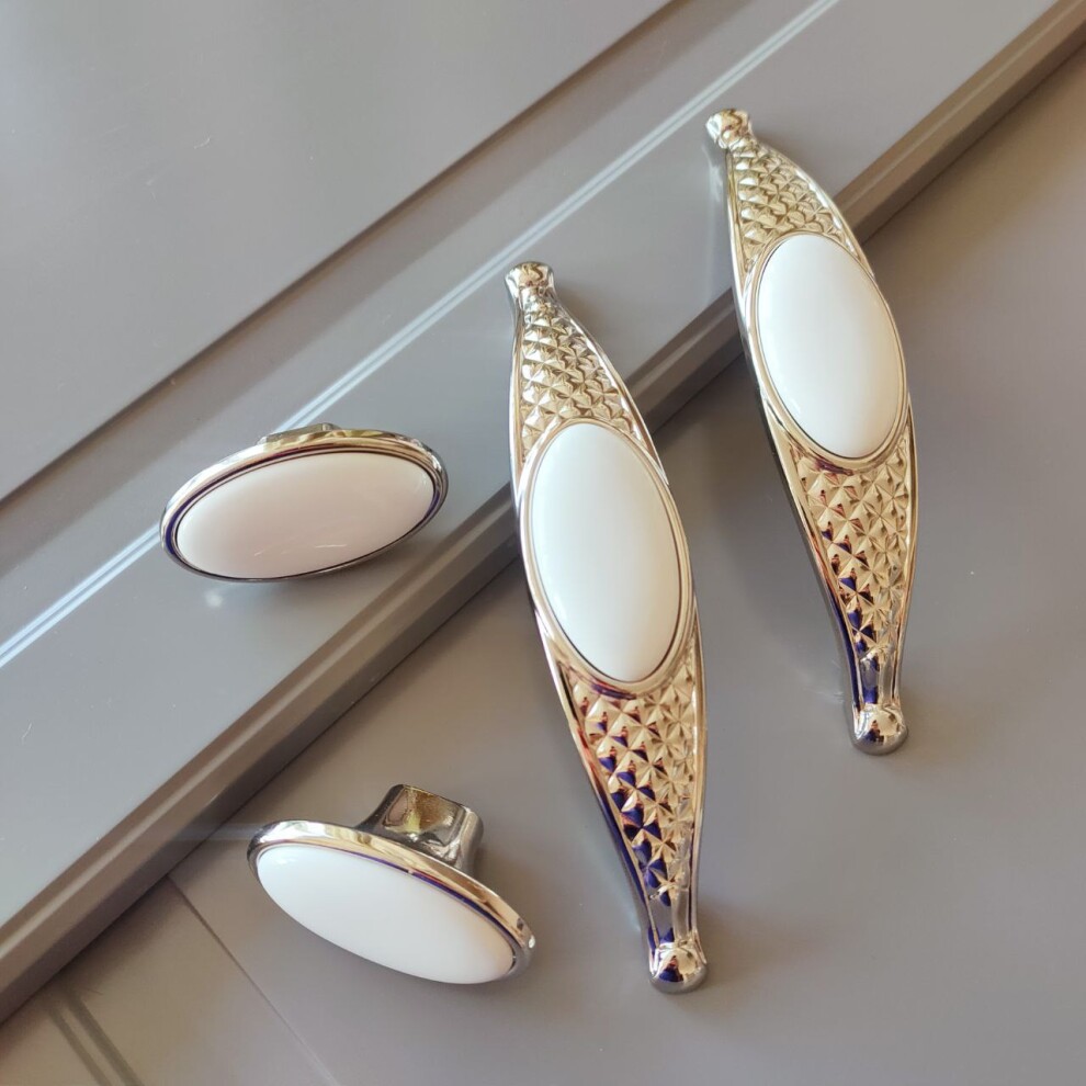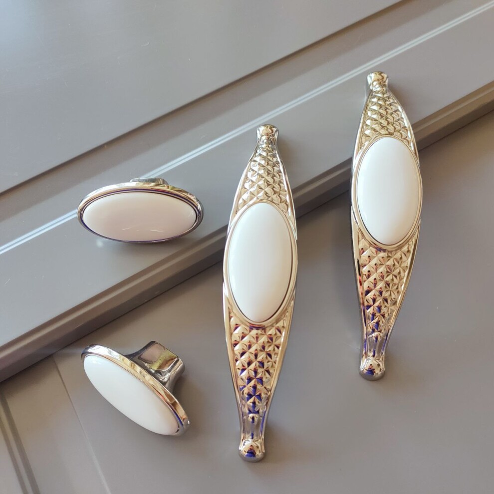 Мебельная ручка скоба с вставкой из белой керамики 160 мм (128 межосевое) W 32 mm, H 34 mm