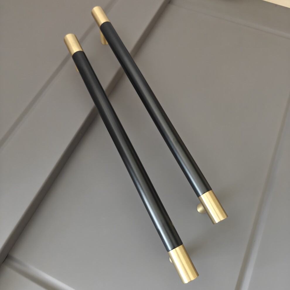 Арт. 1-150 ручка мебельная скоба 260 мм (224), матовый черный / матовая латунь