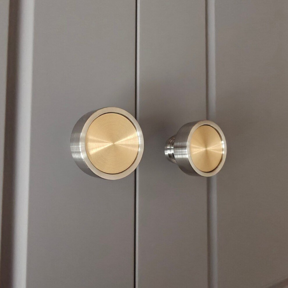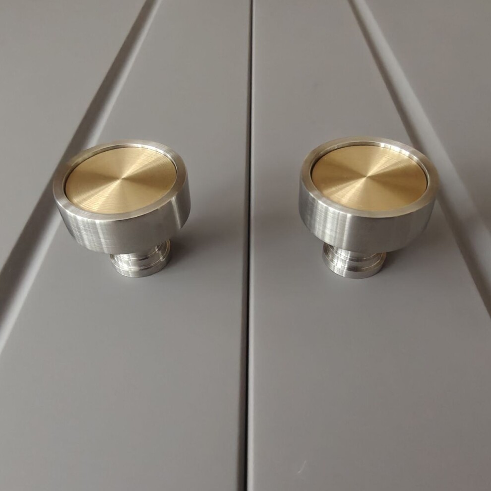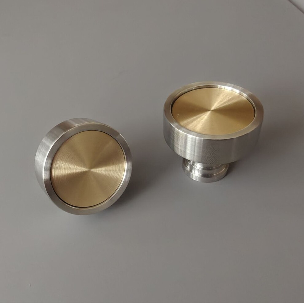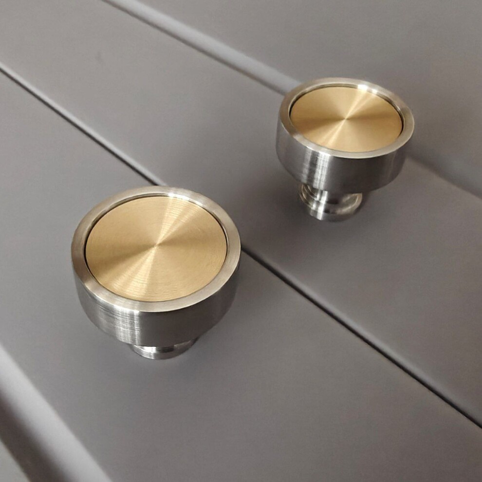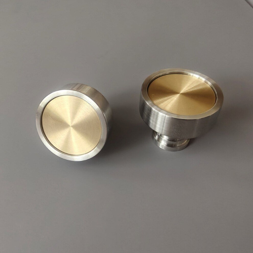 Арт. 118 ручка мебельная кноб 30 мм, комбо матовая латунь / матовый никель