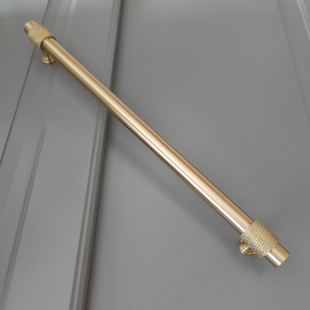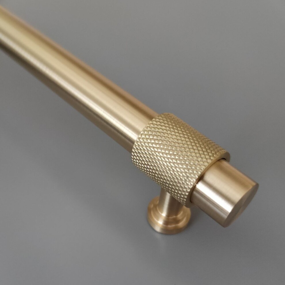 Арт. 132 ручка мебельная скоба 200 мм, муфты с накатом, матовая латунь