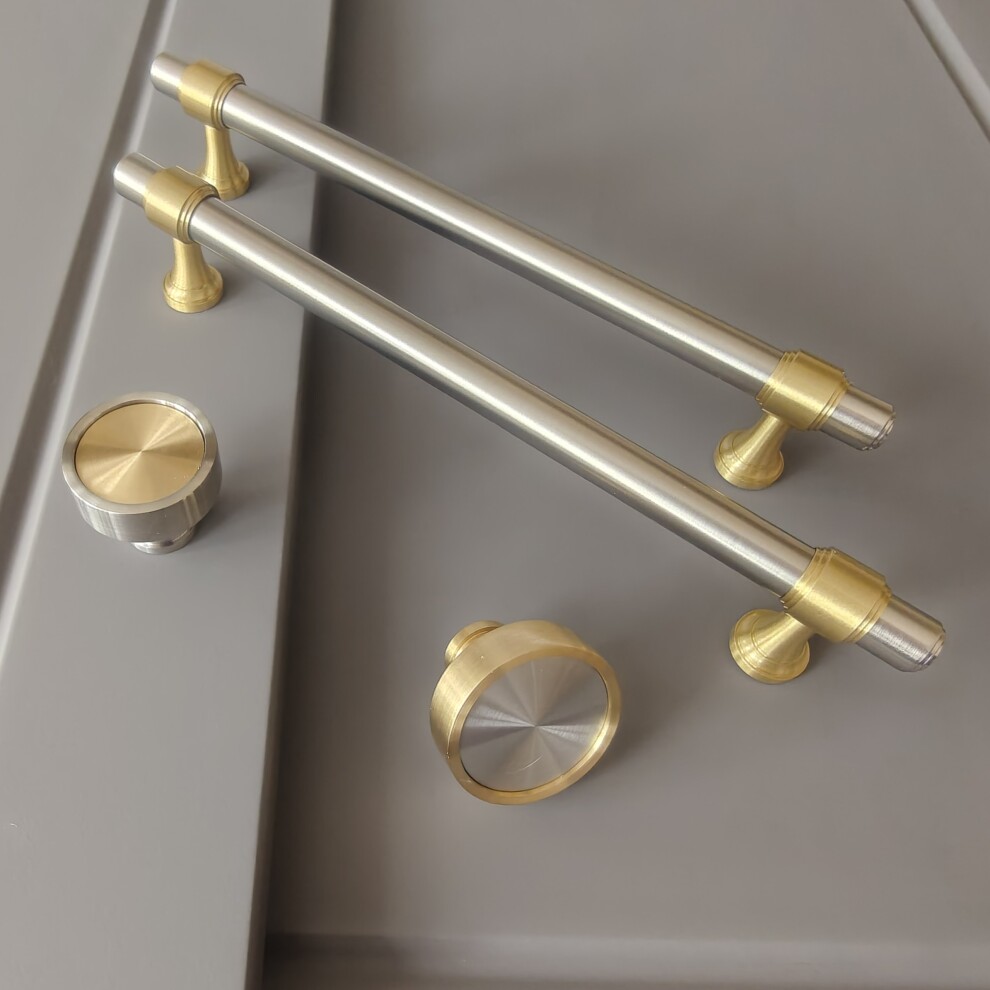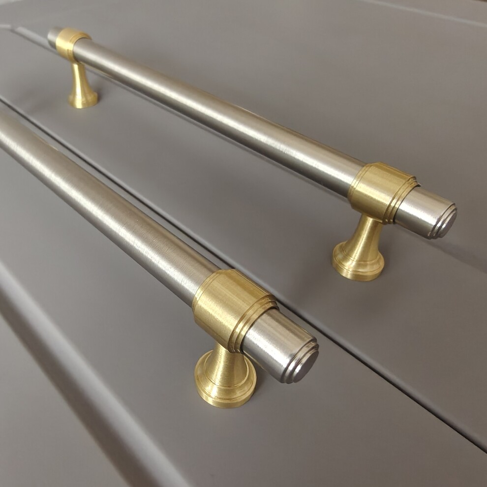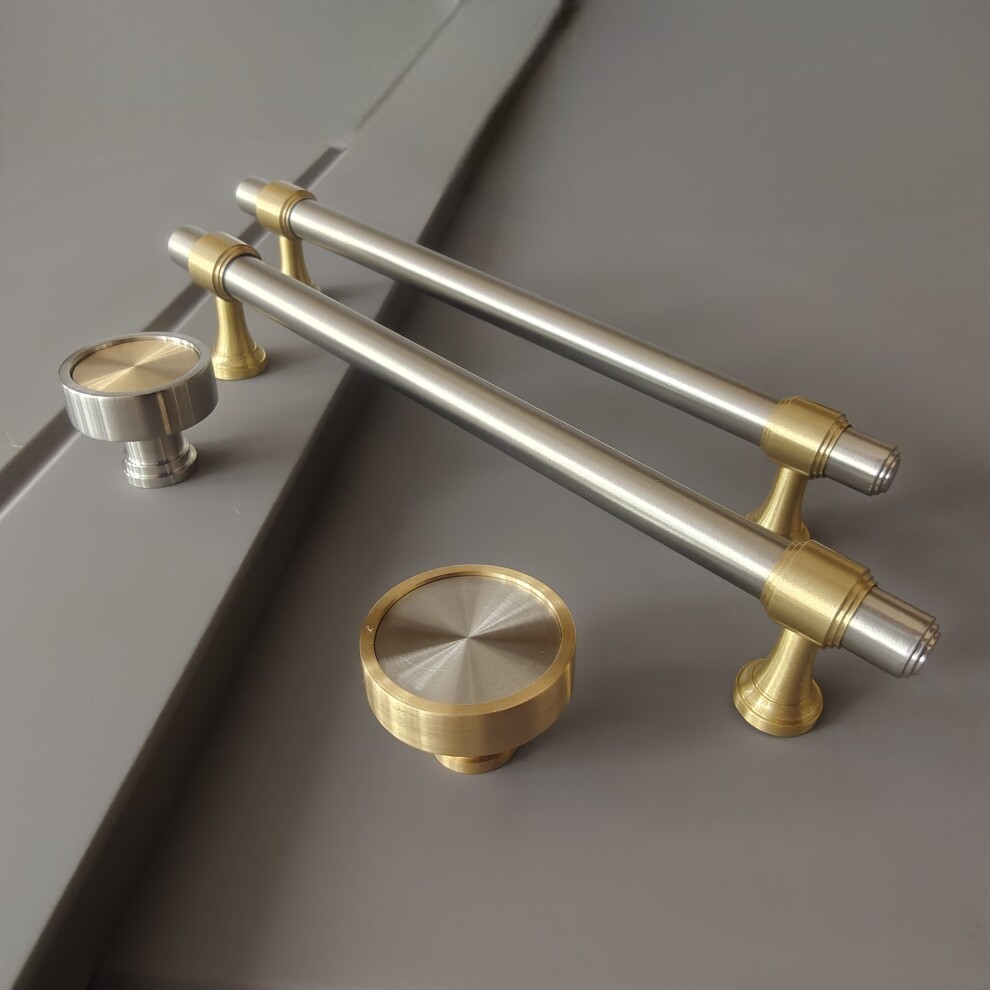 Арт. 141 ручка мебельная скоба 160 (128) мм, комбо финиш матовая латунь / матовый никель