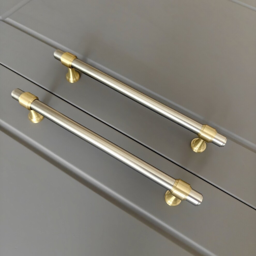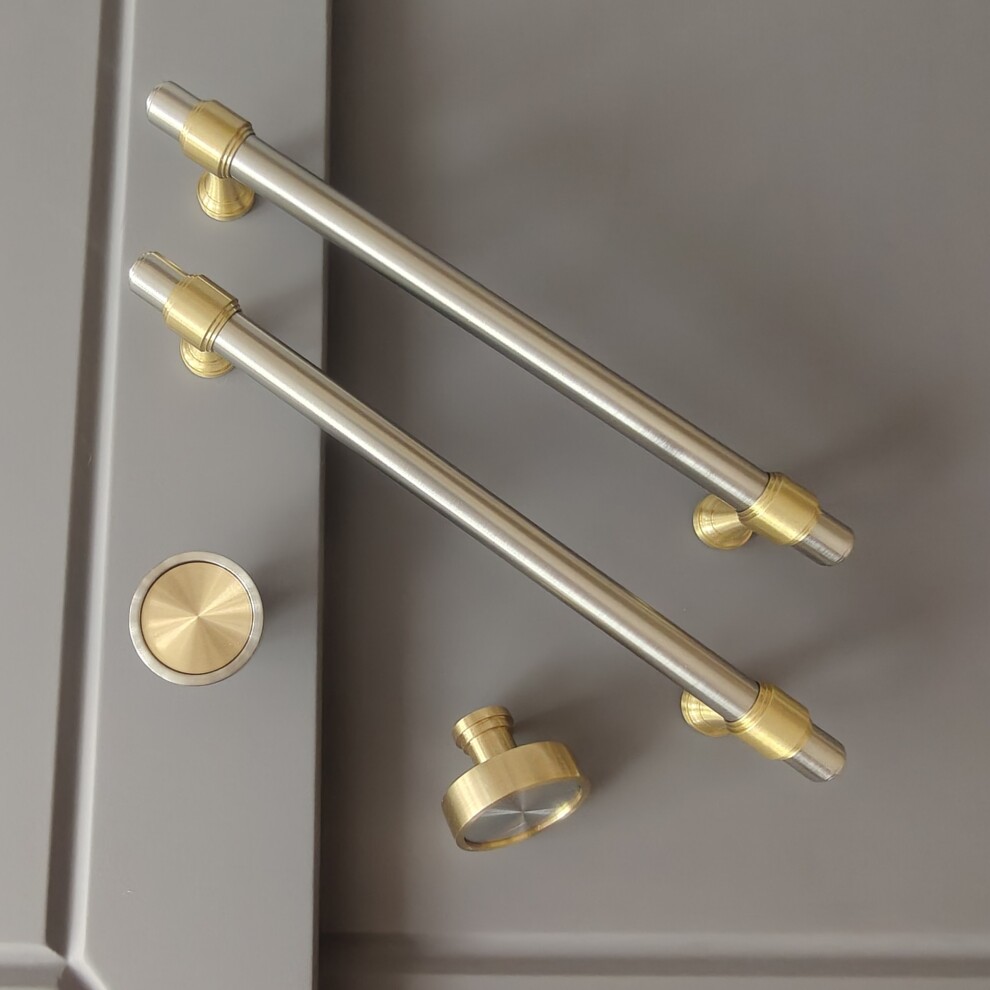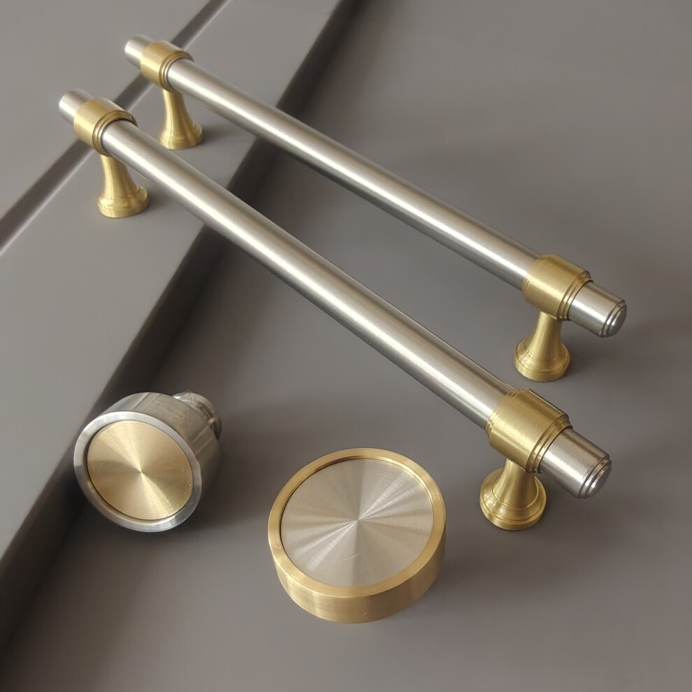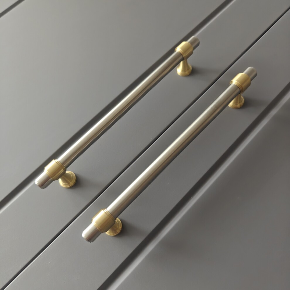 Арт. 141 ручка мебельная скоба 160 (128) мм, комбо финиш матовая латунь / матовый никель
