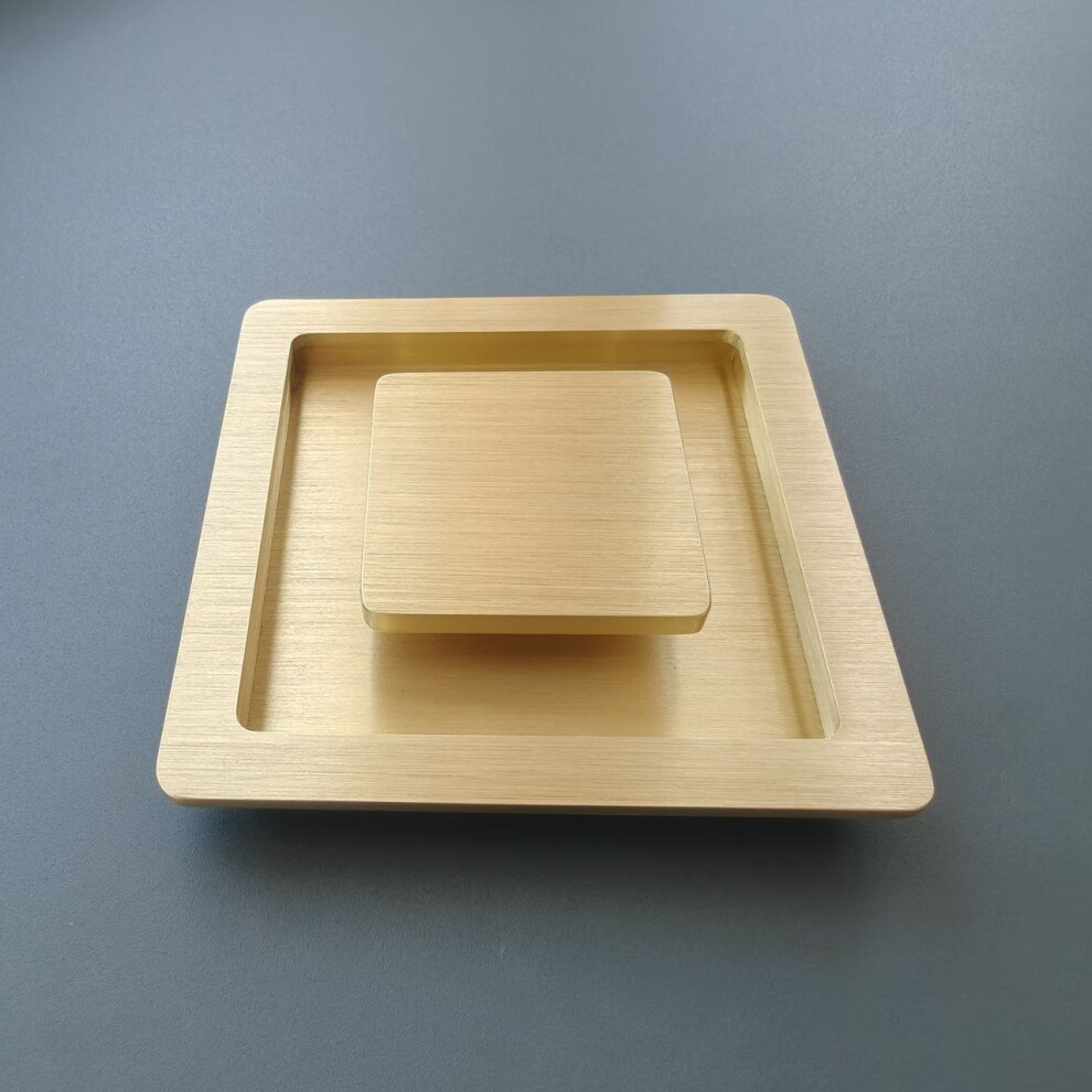 art. 166 ручка мебельная / дверная врезная 100 х 100 мм, матовая латунь