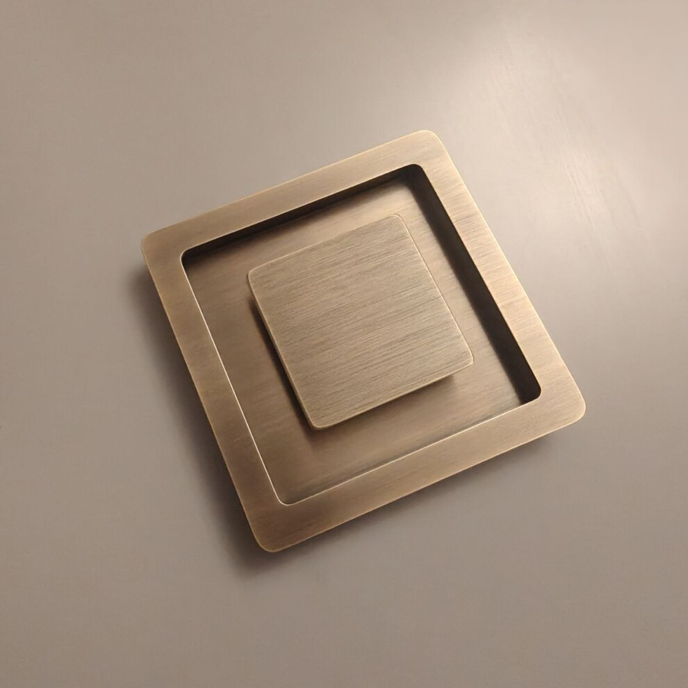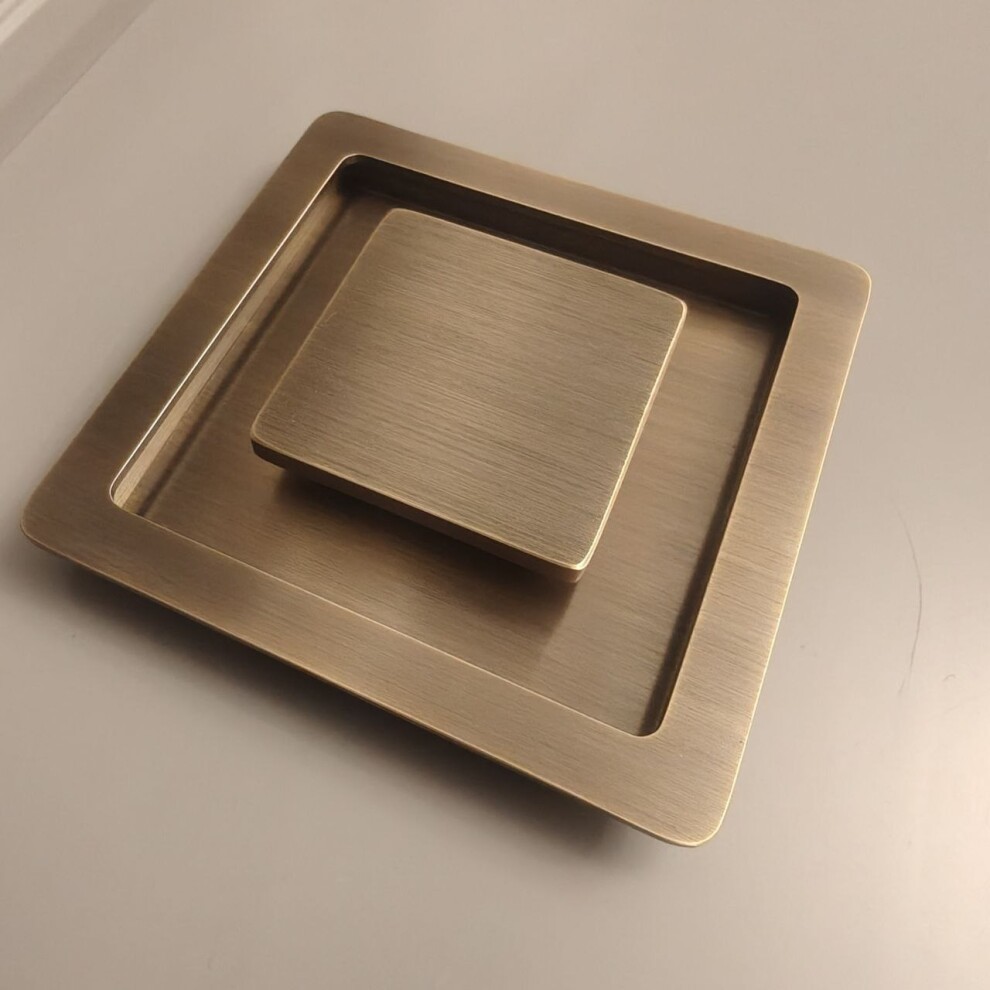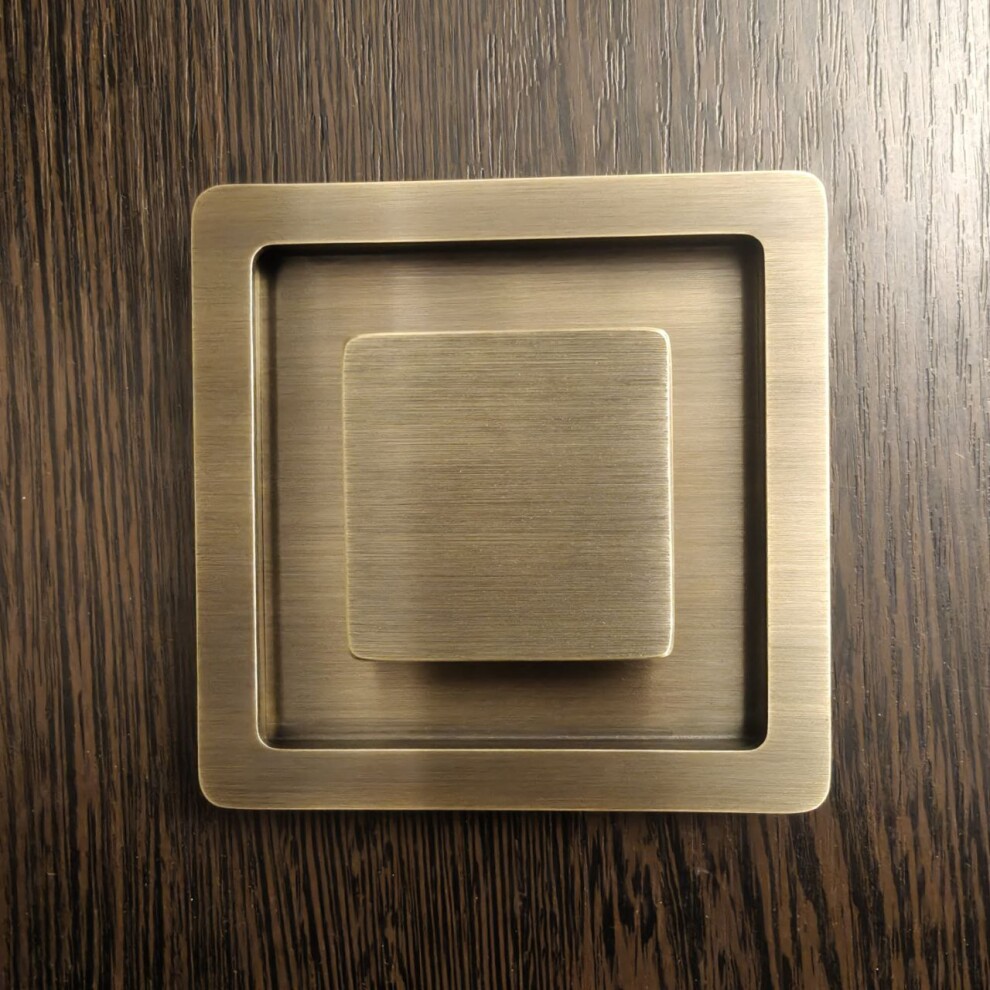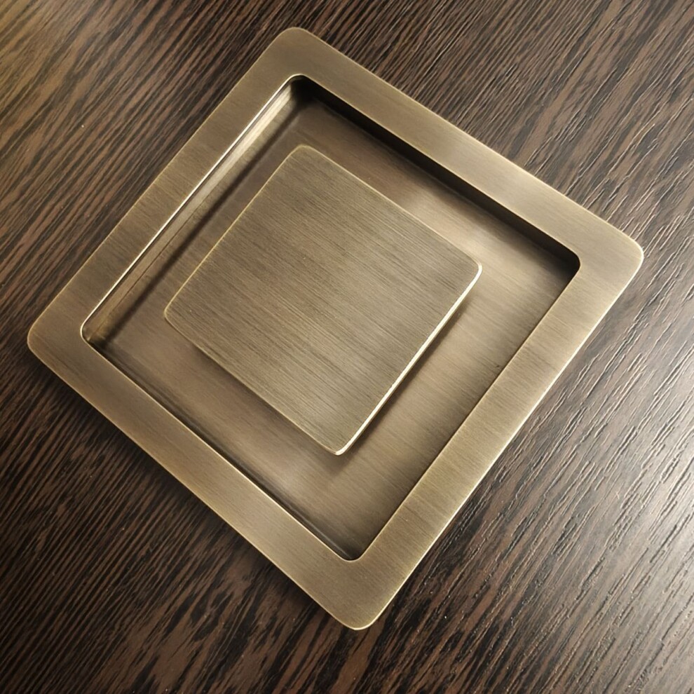 art. 166 ручка мебельная / дверная врезная 100 х 100 мм, латунь патина под бронзу