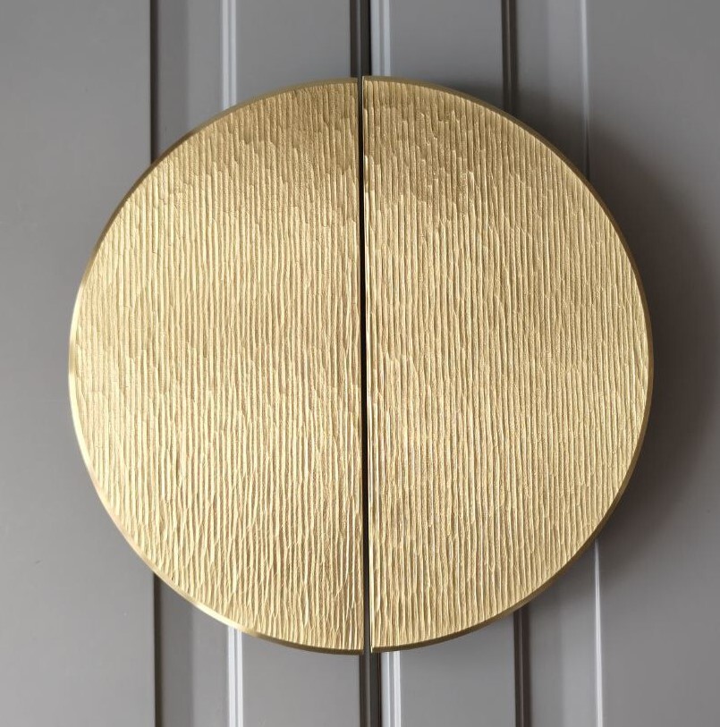 То ли осенний дождь, то ли кора экзотического дерева, а может лучи солнца? В любом случае эта парная ручка привлекает внимание и будет архитектурным акцентом на мебели.